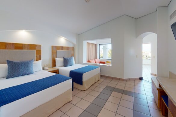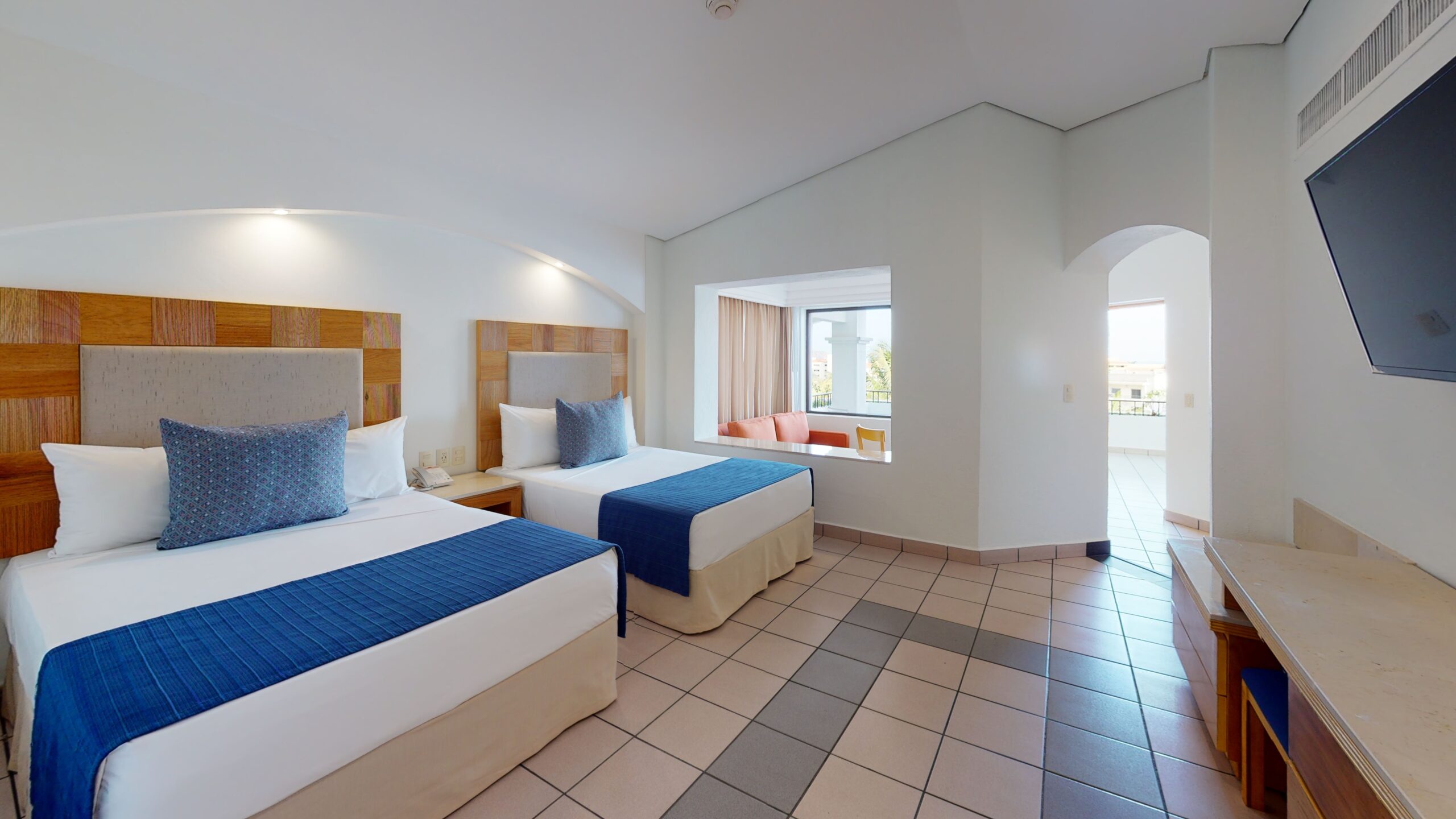 El hotel ofrece habitaciones más amplias, con dos camas matrimoniales y sofá cama, ideales para que todos viajen cómodos sin sacrificar espacio. Además, la cercanía con la naturaleza le da un aire especial a la estancia: desde tu terraza puedes sentir la tranquilidad que ofrecen los jardines y la vegetación que rodean al resort.