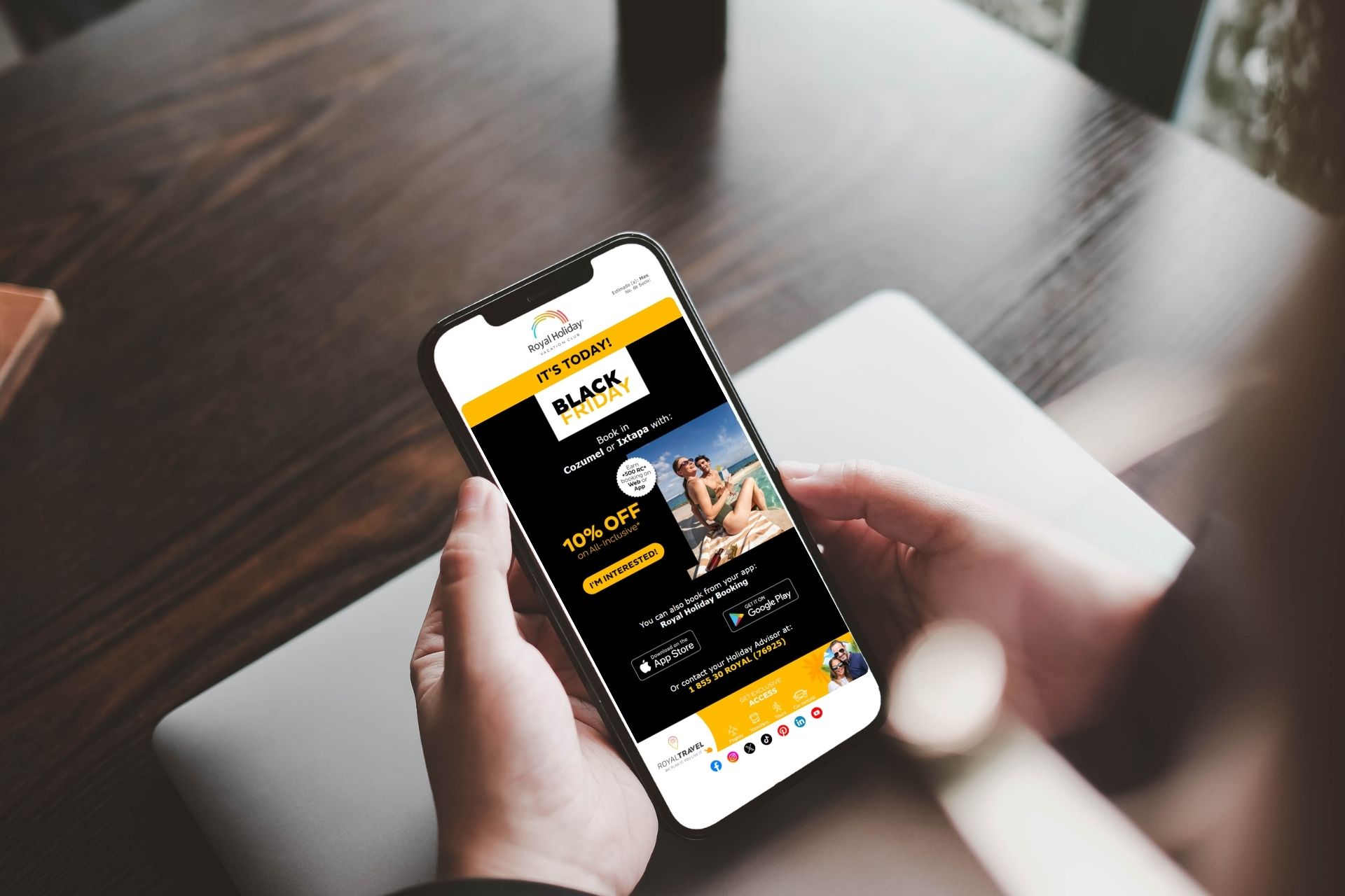 Remember, our main channels for vacation discounts, promotions, and exclusive benefits will be our website, social media, and the Royal Holiday Booking App, so download it straight away.