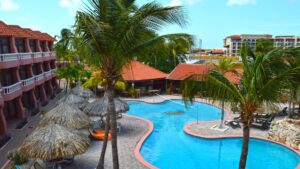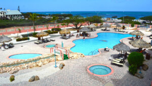 Here you can enjoy wide villa-style apartments, perfect for both couples and families. The resort has two pools, a hot tub, a gym, a spa, and many restaurants where you can also try Aruba’s gastronomy without leaving the hotel.